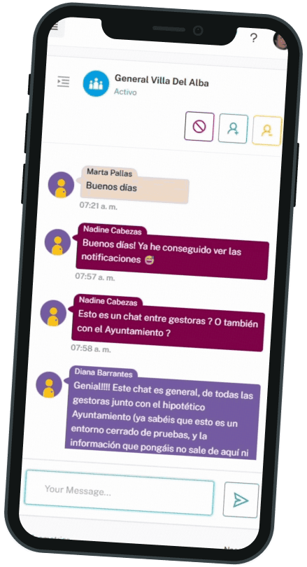 Comunica equipos y grupos sin salir de la plataforma. Chats directos o colectivos permiten coordinar acciones, compartir actualizaciones y resolver incidencias con rapidez.